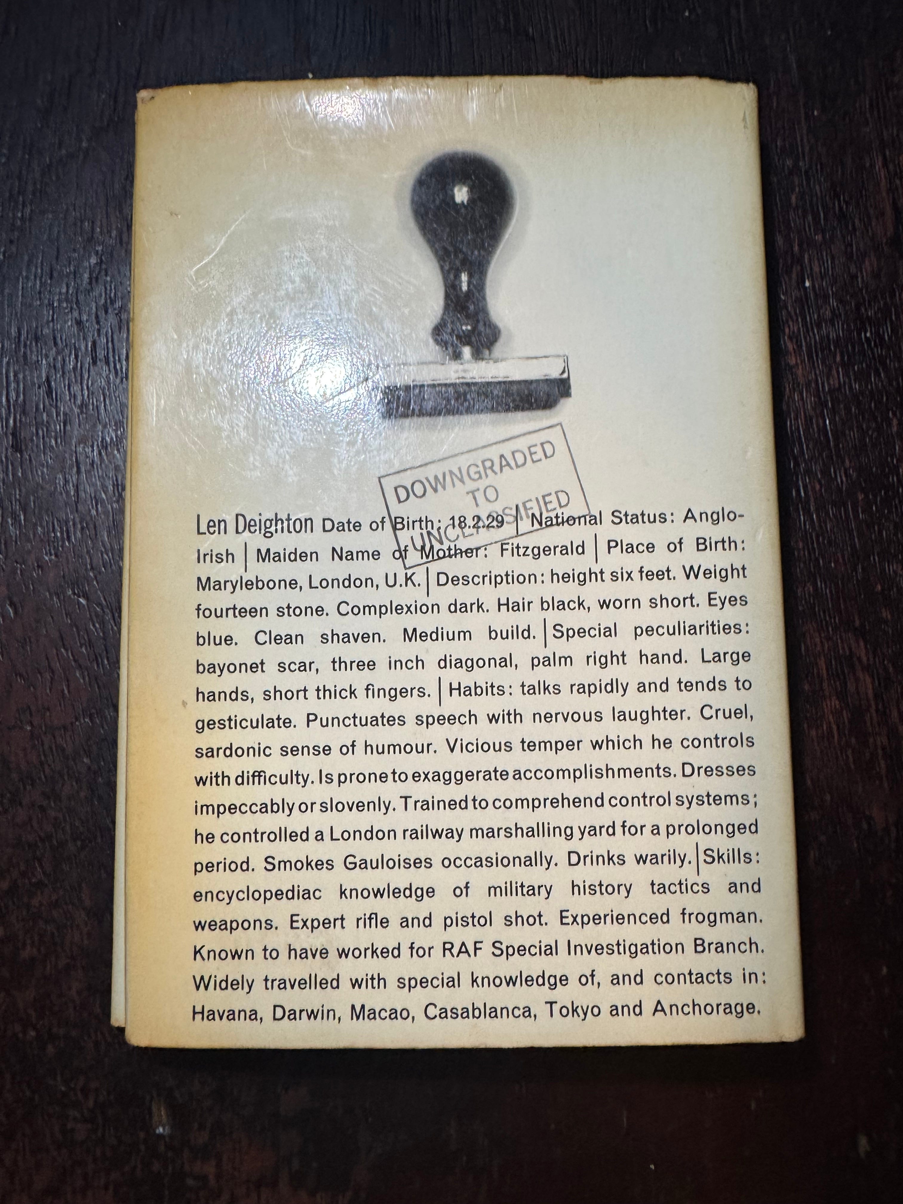 I had taken along all my Deighton editions like some mad stalker fanboy. (Who was I kidding? I was a mad stalker fanboy), including my treasured first edition of The IPCRESS File.