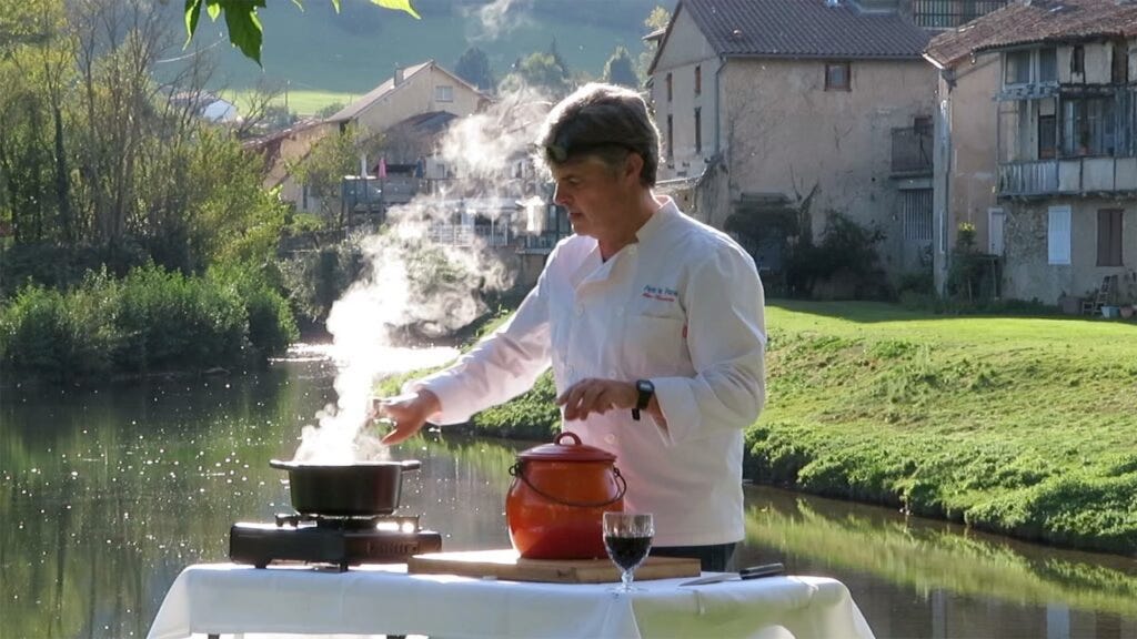 ‘Pete’ is Peter Hanley, who makes brilliant online videos about cooking. He runs the Culinary Academy of the Pyrenees. I haven’t been able to find out much more about him except what can be gleaned from his output. He seems to own an RV in which he drives all around southwest France, over to Spain, up into the Pyrenees, and he cooks local traditional dishes on a gas ring. There must be a camera operator. Either that, or Hanley is more than just talented. He’s also a contortionist with a very steady hand and a three metre long arm. But both clearly know what they’re doing. This stuff is better shot than 90% of current food TV.